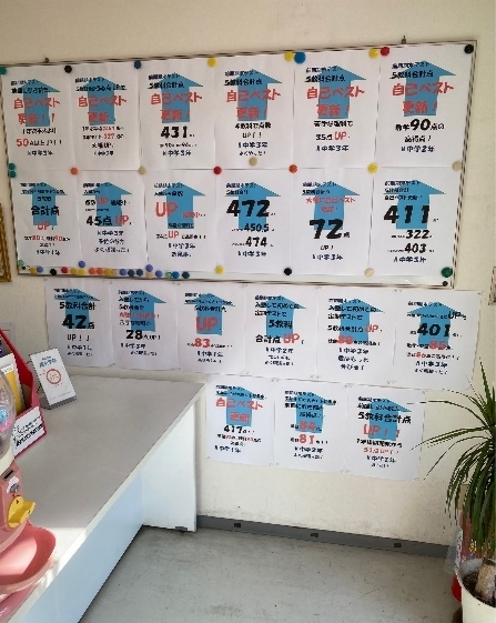 写真のように、掲示する場所がなくなるほど、素晴らしい出来でした。ついに2か所に分けて掲示しています。
