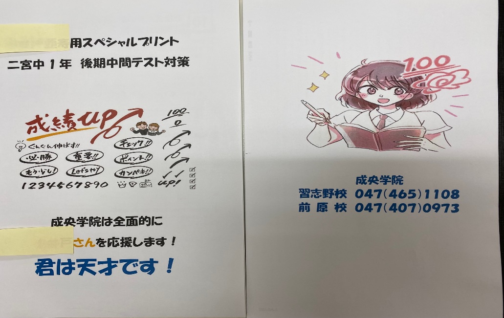 また、約2週間後には中1、中2も中間試験です。