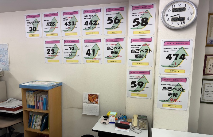 また今のところでは前回の試験から94点UPの生徒がいます。もちろんこの生徒も自己ベスト更新です。