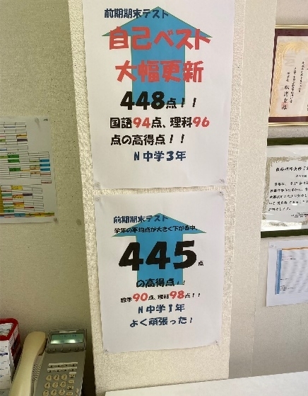 各中学で行われた、前期期末テスト結果が続々と出てきています。