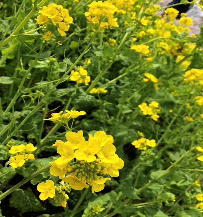 「菜の花や 月は東に 日は西に」 与謝蕪村 菜の花の「黄色」、月が昇る東の空の「紺」、日が沈む西の夕焼けの「赤」という色彩感に溢れた句ですね!